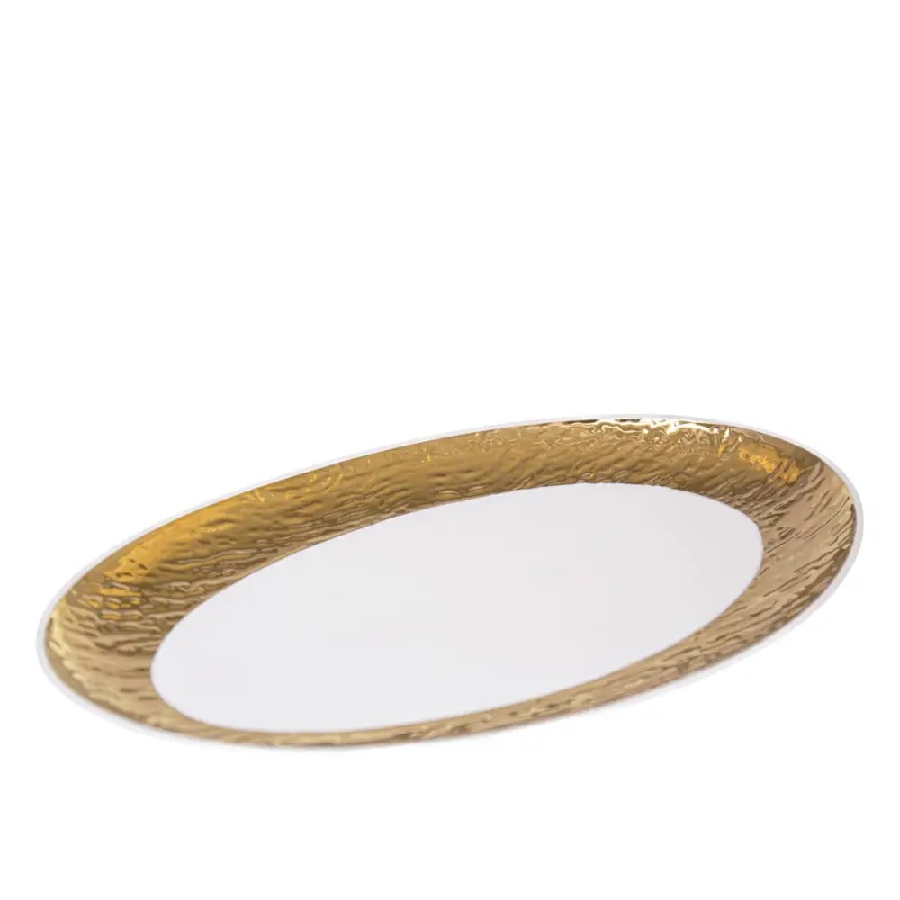 Aulica – Piatto ovale bianco e oro da 36,5 cm