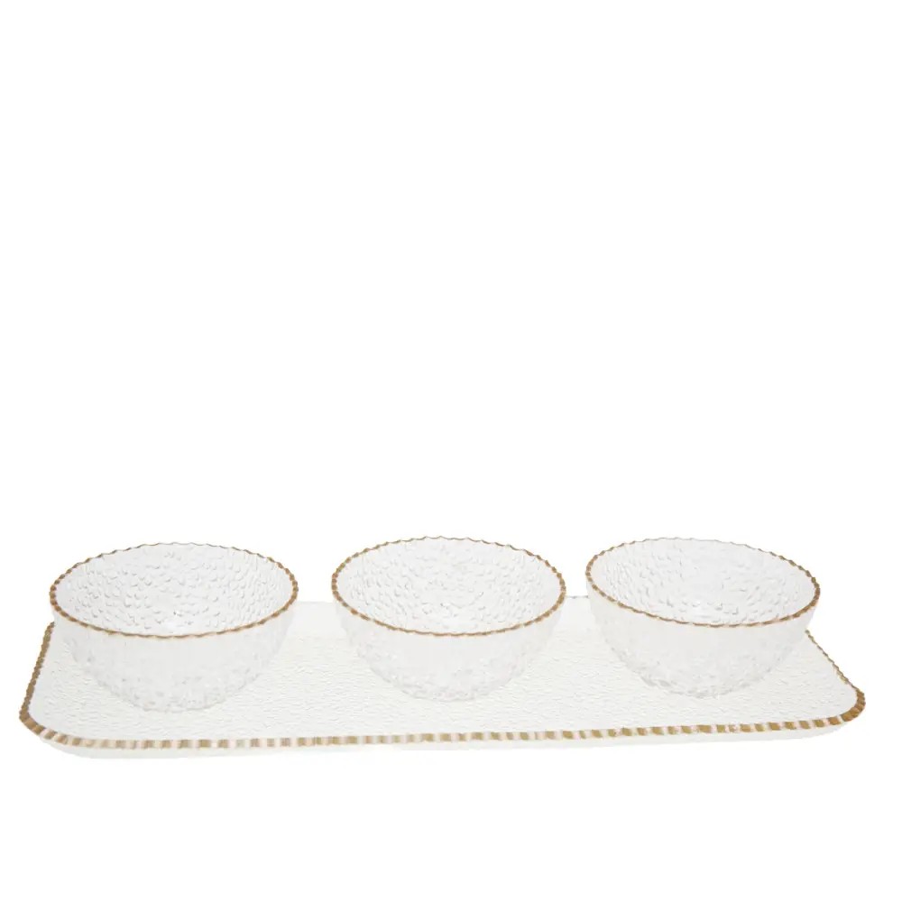 Set da aperitivo di 3 ciotole su vassoio con bordo dorato – AULICA