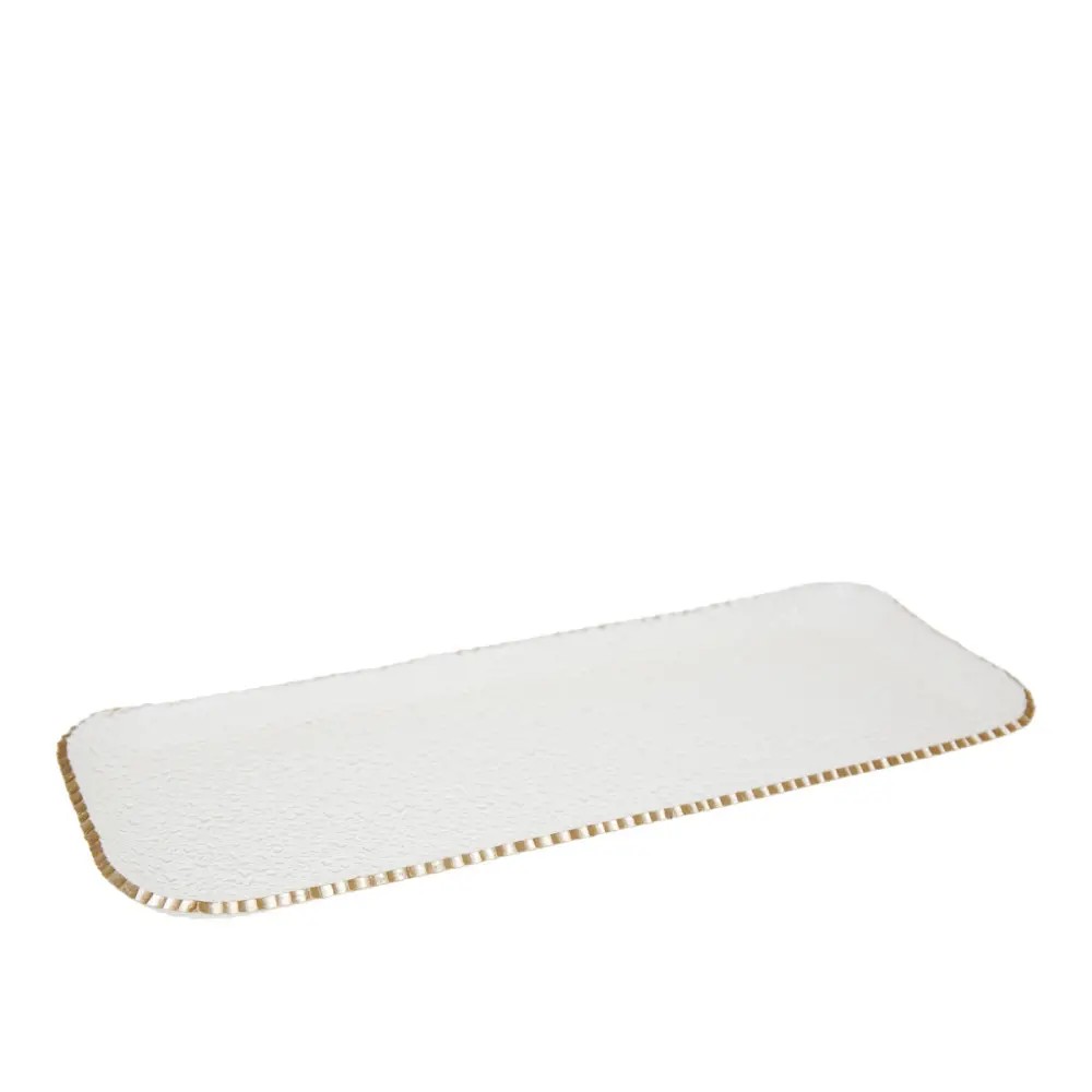 Vassoio rettangolare in vetro, bordo dorato, 37×15,5x2cm – AULICA