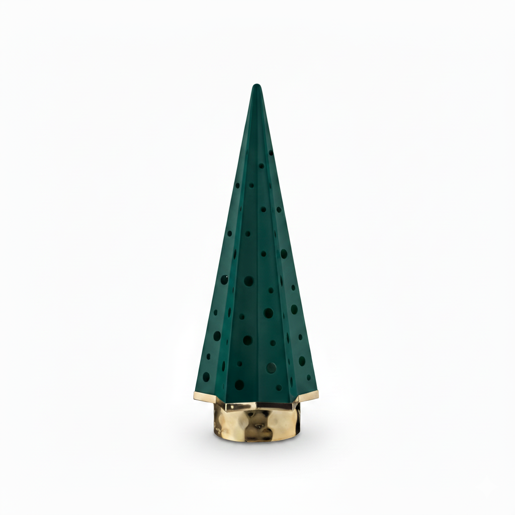 Porta un tocco di eleganza contemporanea alle tue feste con questo raffinato albero di Natale firmato Bongelli. La sua silhouette slanciata in ceramica verde, impreziosita da delicati fori a pois che diffondono una luce calda e soffusa, crea unโatmosfera magica e accogliente.