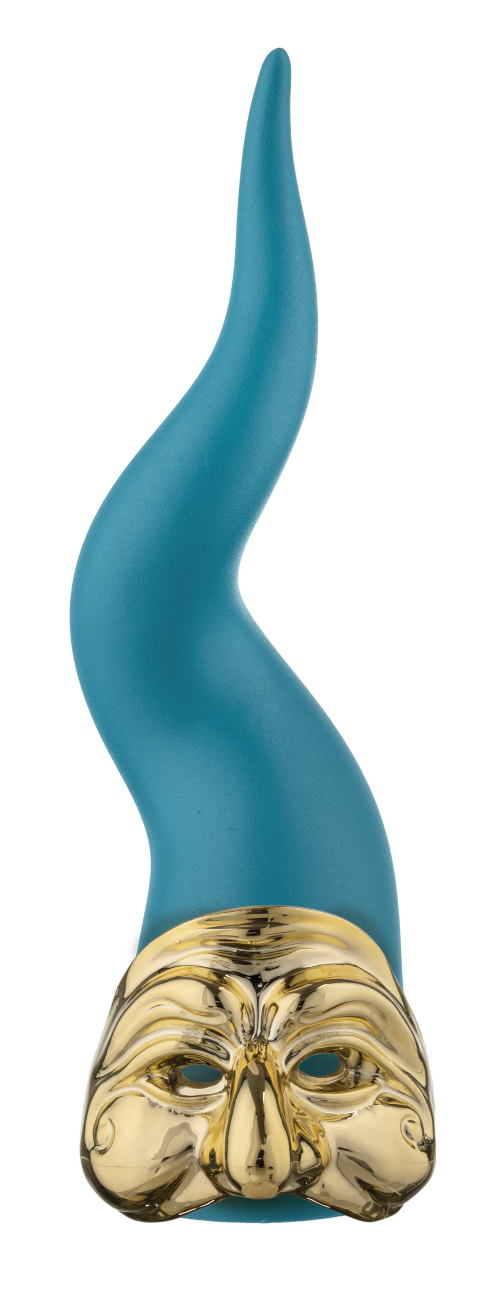Portafortuna dallo stile unico, il Corno Pulcinella firmato Bongelli Preziosi è un elegante simbolo di buona sorte e allegria napoletana. Realizzato in resina di alta qualità, si distingue per la sinuosa forma del corno color turchese, emblema di protezione contro le negatività, impreziosito dalla celebre maschera dorata di Pulcinella, icona della tradizione partenopea e della commedia dell’arte.