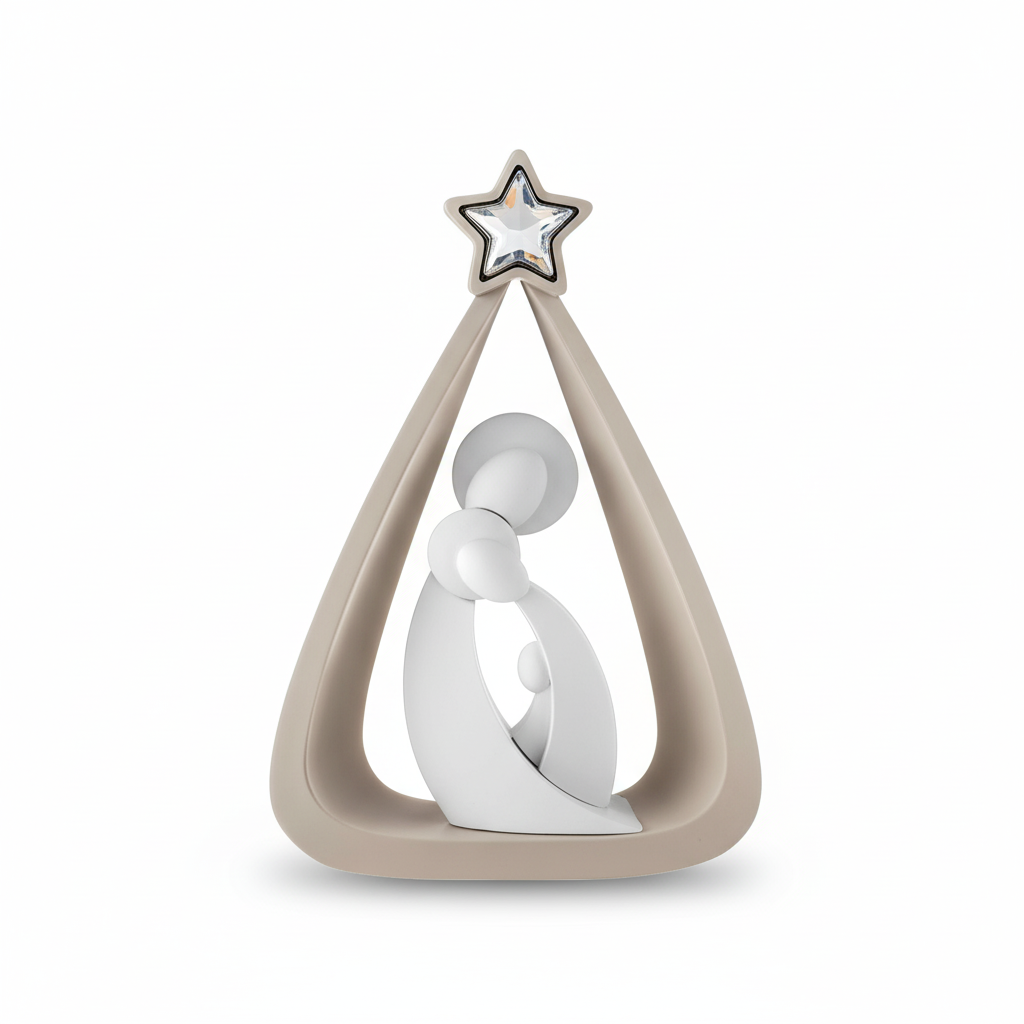 Questo raffinato presepe firmato Bongelli è un capolavoro di design contemporaneo che racchiude tutta la magia del Natale. Realizzato in resina di alta qualità, presenta linee essenziali e armoniose che richiamano la Sacra Famiglia, impreziosite da una stella che illumina la scena.
