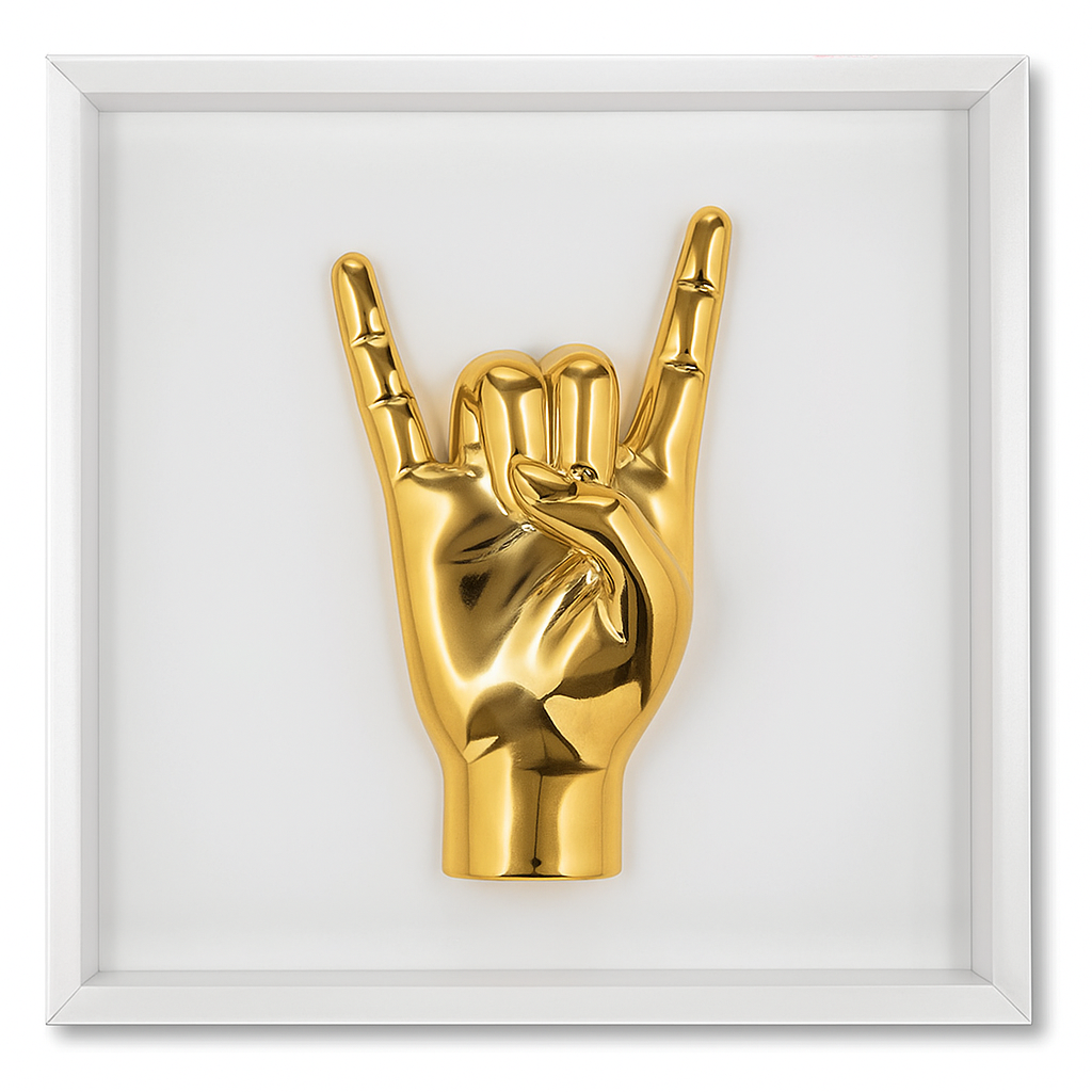 Un’opera dal forte valore simbolico che fonde tradizione napoletana e design contemporaneo. Questo quadro esclusivo racchiude la celebre mano “a corna”, amuleto di buon auspicio e protezione contro la sfortuna, realizzata in una brillante finitura oro lucido che riflette la luce con eleganza e carattere.
