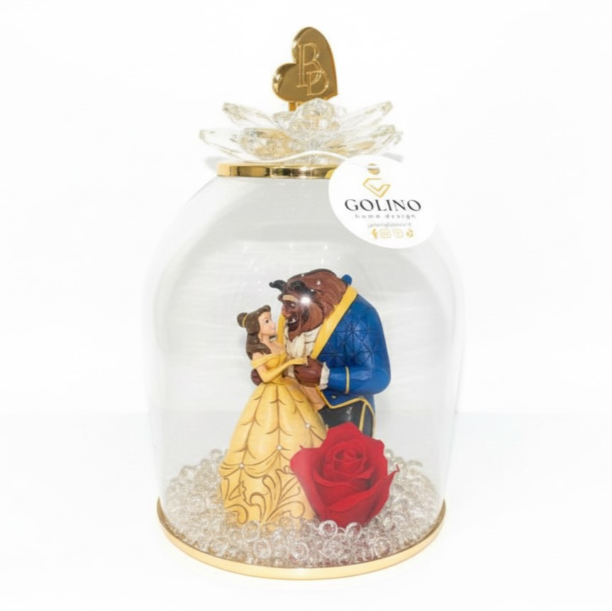 Dettagli Curati: All’interno troviamo le miniature finemente lavorate di Belle e la Bestia, accompagnate dall’immancabile Rosa Rossa, simbolo del vero amore che va oltre le apparenze.