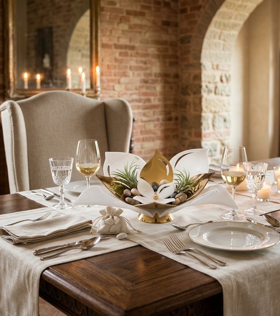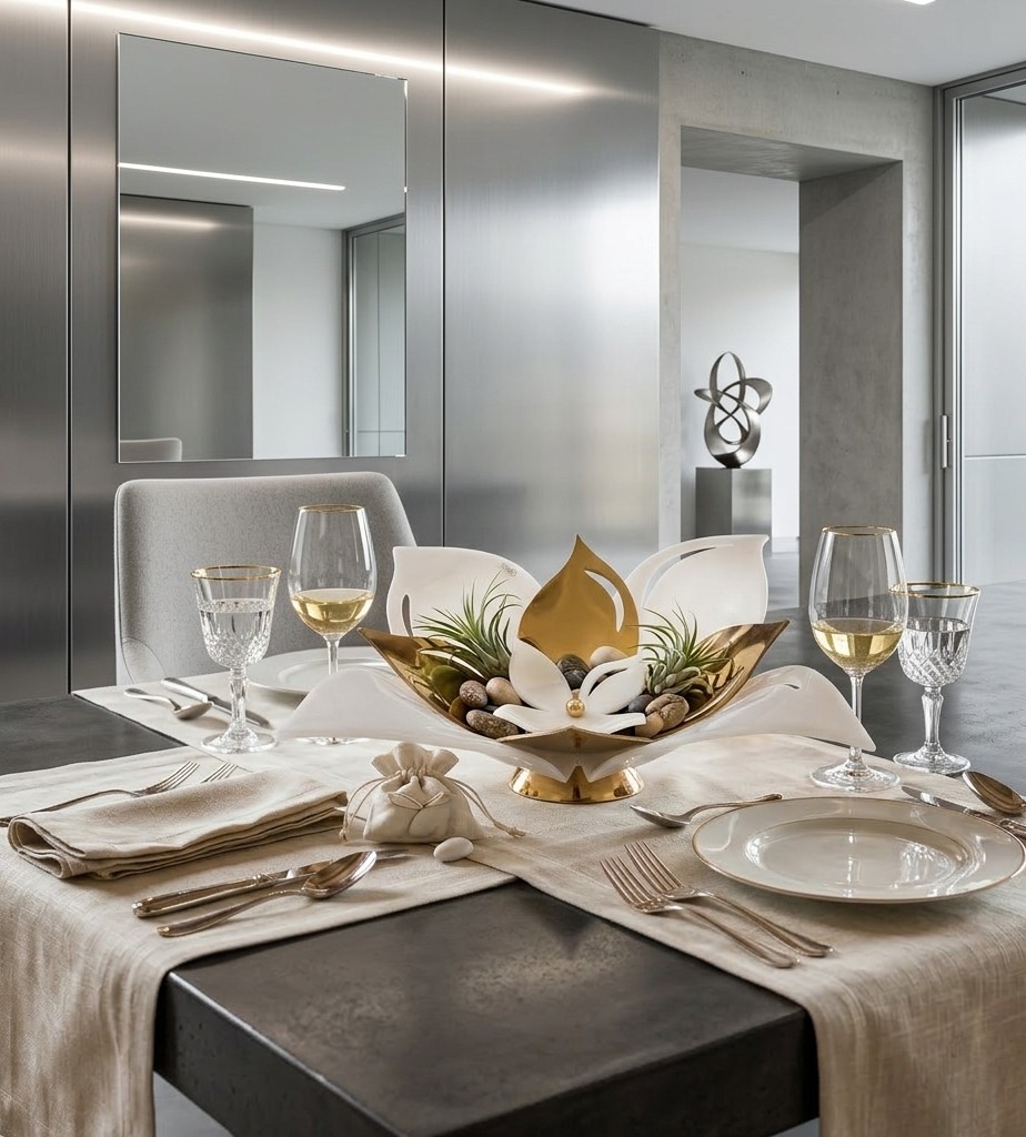 Centrotavola Artistico “Ninfea” by Buba Design – Eleganza in Bianco e Oro