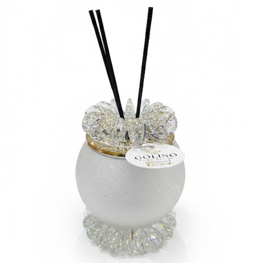 Dettagli Luxury in Cristallo: Il colletto superiore e la base sono impreziositi da ghiere in cristallo sfaccettato, che donano brillantezza e un carattere regale al diffusore.