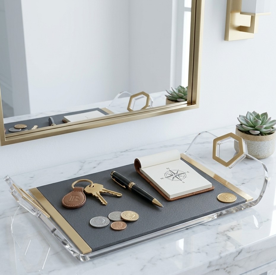 Versatilità d’Arredo: Ideale come svuota tasche di rappresentanza per ingressi moderni, o come vassoio decorativo per scrivanie direzionali e tavolini da caffè.