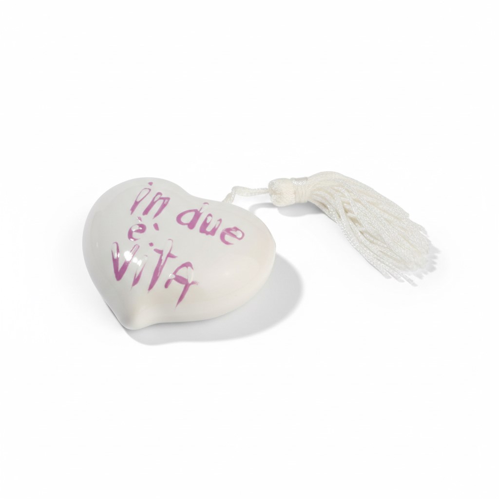 Il Cuore: Una scultura in ceramica bianca lucida dalla forma morbida e accogliente.