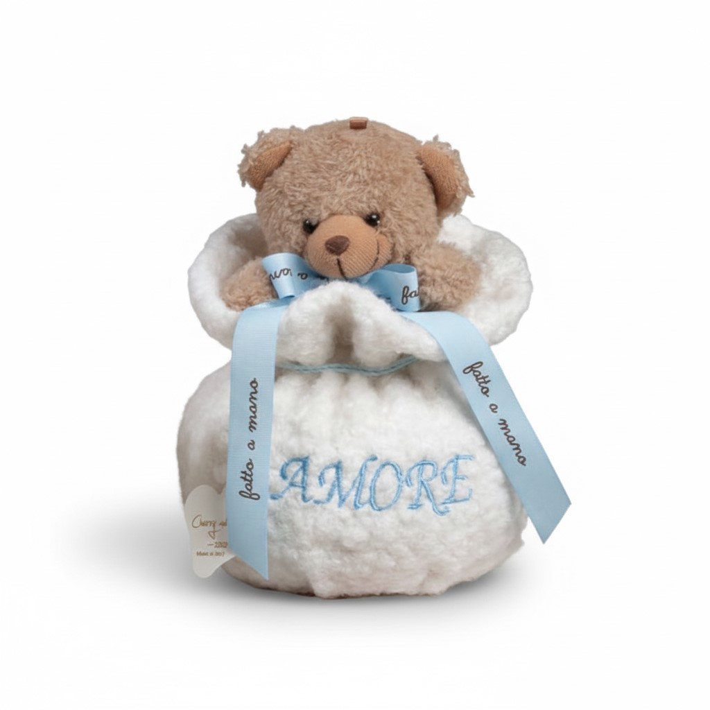 Un Soffice Abbraccio di Dolcezza: Puffo Porta Confetti “Yoghi” in Bouclè