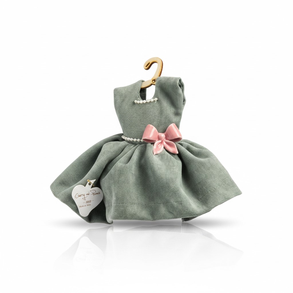 Aggiungi un tocco di raffinata sartorialità ai tuoi armadi o celebra un evento speciale con il Vestitino Verde Profumabiancheria firmato Cherry and Peach. Questa creazione esclusiva non è solo un accessorio funzionale, ma un piccolo capolavoro di design Made in Italy, che fonde la morbidezza del cotone di alta qualità con il prestigio della ceramica di Capodimonte.Dettagli di Eccellenza e Lavorazione Artigianale
