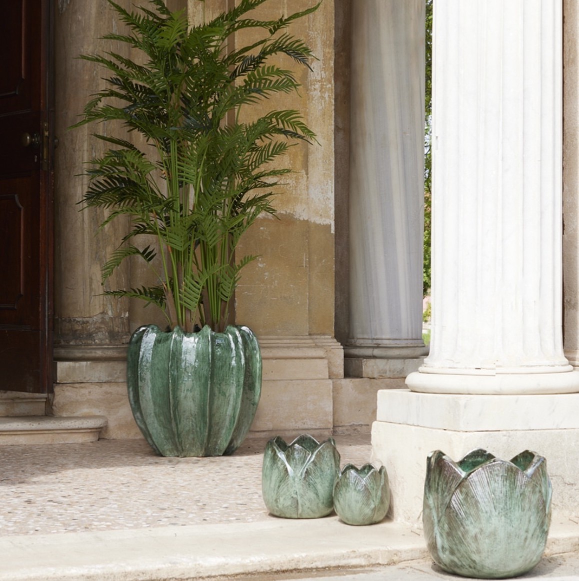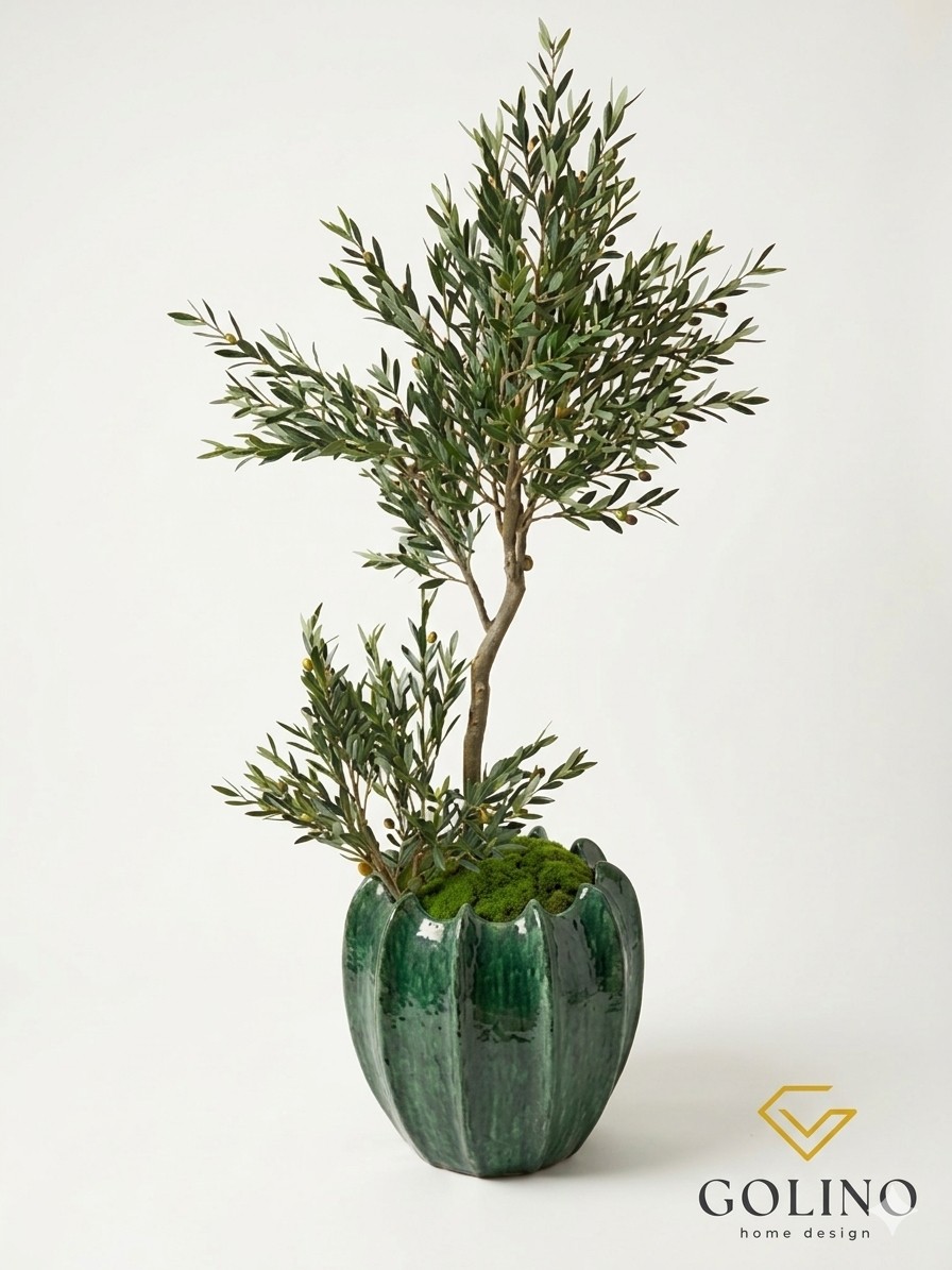 L’idea vincente: Data la sua imponenza e la bocca ampia, è il compagno ideale per le piante artificiali EDG di grande formato (dai 180 cm in su). L’accostamento tra il turchese profondo della ceramica e il verde brillante delle foglie creerà un angolo di design naturale e sofisticato.