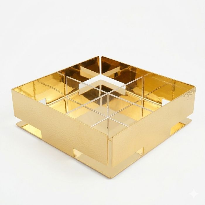 Il risultato รจ un oggetto di design dal carattere forte, perfetto per ambienti che richiedono un tocco di opulenza contemporanea. Grazie alla sua forma quadrata e alle dimensioni generose, si adatta perfettamente sia a tovaglioli di carta di alta qualitร che a raffinati tovaglioli in lino.