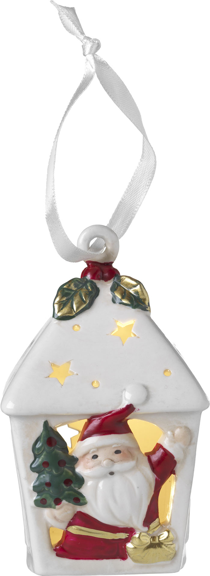 Illumina le tue festività con la magia di questa incantevole decorazione LED di Evviva! Questa deliziosa decorazione a forma di casetta, realizzata in ceramica di alta qualità, cattura lo spirito natalizio con la sua luce calda e accogliente. Babbo Natale, con il suo sacco di doni e un festoso albero di Natale, ti aspetta all’interno, illuminato da una delicata luce LED che filtra attraverso le finestre a forma di stella. Perfetta per addobbare il tuo albero, decorare una mensola o creare un’atmosfera magica in ogni angolo della casa, questa decorazione è arricchita da dettagli finemente lavorati, come le foglie dorate e rosse sulla parte superiore e il pratico nastrino per appenderla. Un piccolo tocco di luce e allegria che renderà il tuo Natale ancora più speciale. Lasciati avvolgere dalla calda luce di Evviva!