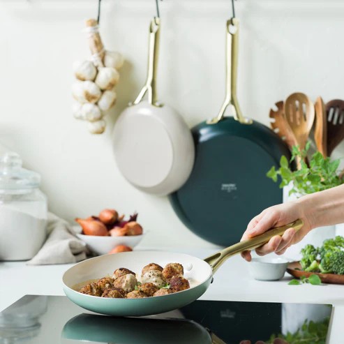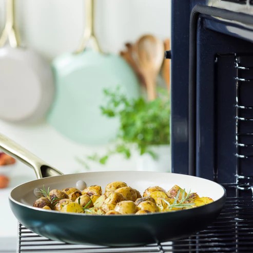 Aggiungete un tocco di colore alla vostra cucina con il nostro set di padelle Shades! Le tonalità armoniose vi faranno sentire subito più vicini alla natura. Inoltre, le padelle sono realizzate al 100% in alluminio riciclato e presentano il nostro rivestimento antiaderente in ceramica senza PFAS . La base a induzione perforata garantisce una distribuzione uniforme del calore e resiste all’uso quotidiano. L’interno color crema e il manico color champagne completano perfettamente il design. Le padelle sono facili da pulire con un panno o, per le macchie più ostinate, possono essere lavate in lavastoviglie. Sono inoltre adatte all’uso in forno fino a 200 °C.