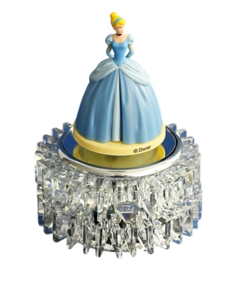 La Principessa Eterna: Una statuetta dettagliata di Cenerentola nel suo abito azzurro regale decora la parte superiore, pronta a “danzare” sulla melodia.