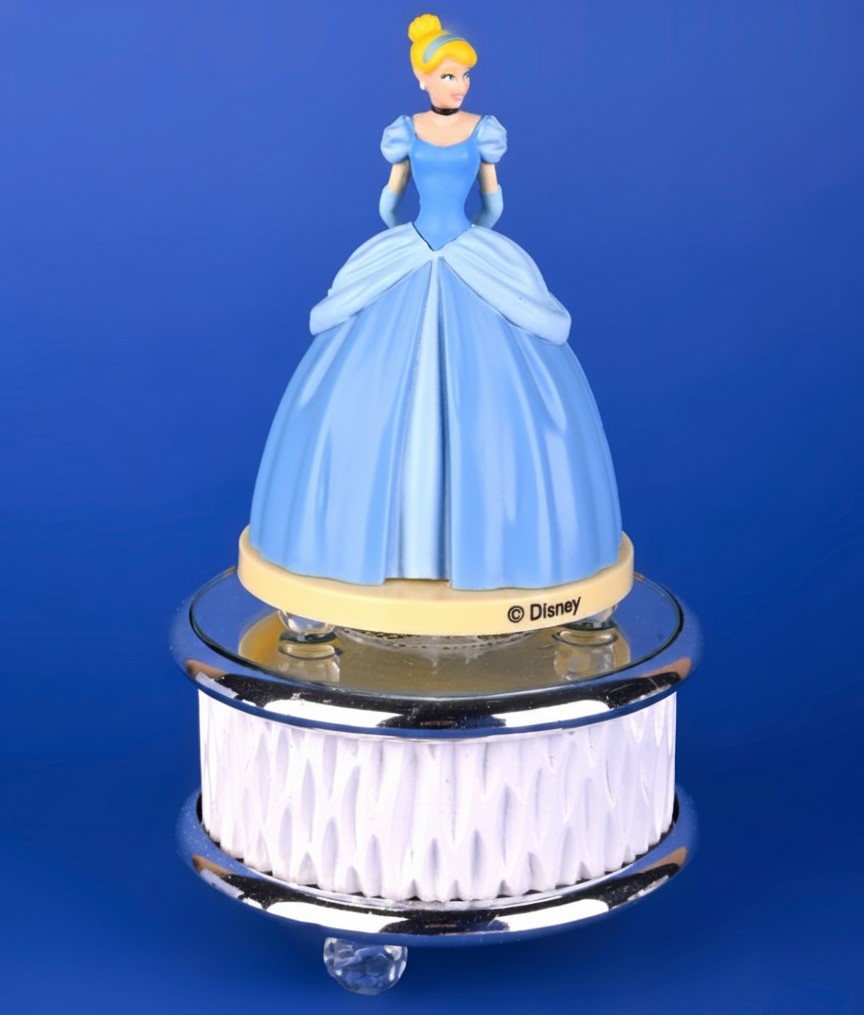Statuetta Iconica: La parte superiore è sormontata dalla statuetta dettagliata di Cenerentola nel suo vestito da ballo, rendendola un pezzo da collezione che decora e affascina.