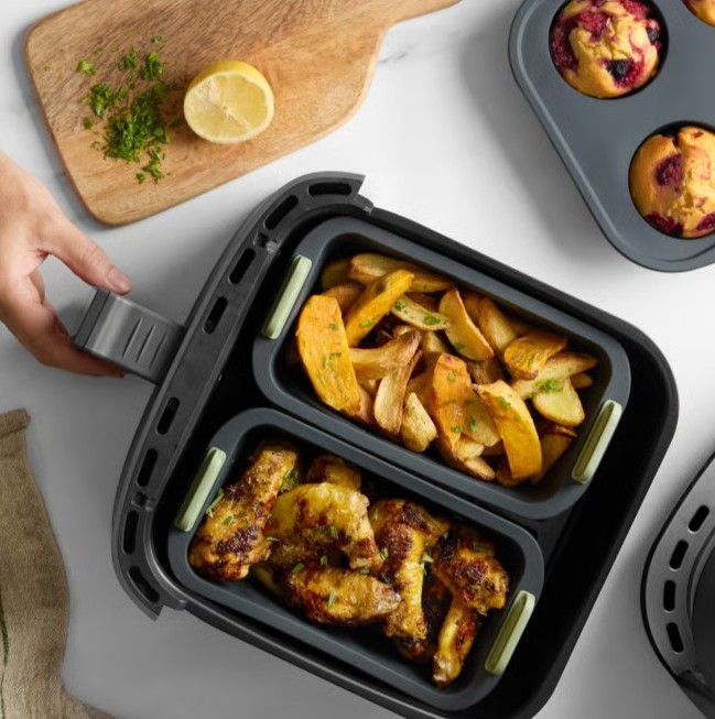 Adatto all’uso in friggitrice ad aria, forno, microonde, frigorifero e lavastoviglie.