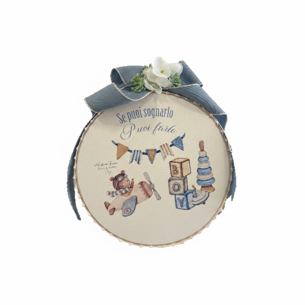 Culla i sogni del tuo piccolo con un dettaglio d’arredo che emana dolcezza e ispirazione. Il Tamburello Nascita di Madame Fioccò è molto più di una semplice decorazione; è un invito a volare alto, realizzato con l’amore e la cura artigianale che solo il vero Made in Italy sa offrire.