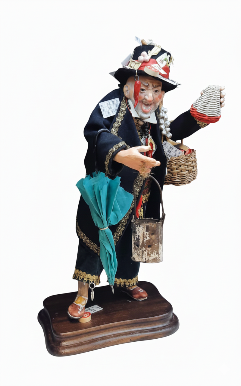 Questa scultura non è solo un oggetto d’arte, ma un vero e proprio talismano che porta con sé la storia, l’ironia e la profonda credenza nella fortuna del popolo napoletano. È il regalo perfetto per gli amanti della cultura italiana, del folklore e del presepe tradizionale, o per chiunque voglia un eccentrico e affascinante portafortuna nella propria casa.