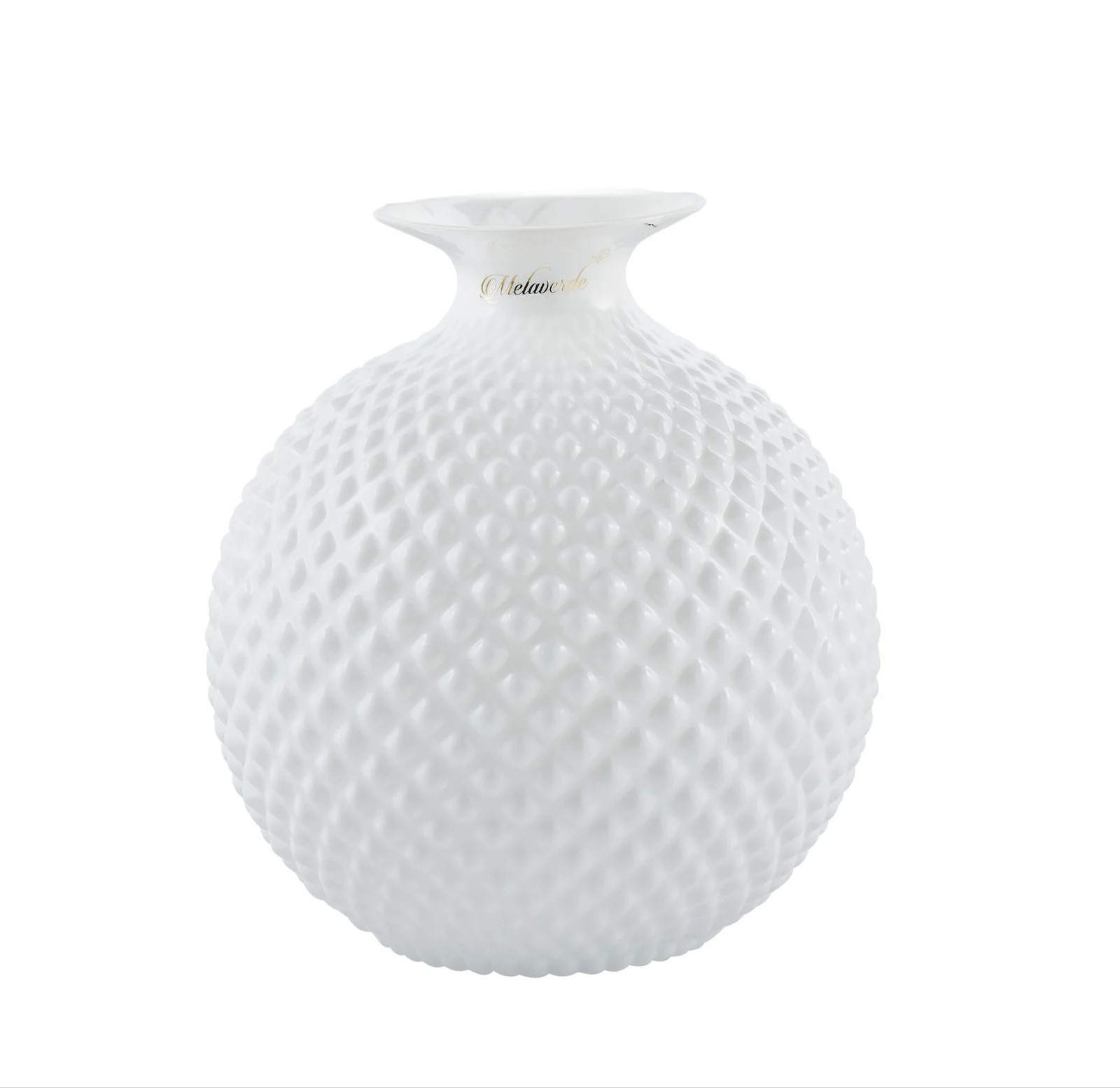 Un oggetto di design raffinato e senza tempo. Il Vaso Javier di Melaverde si distingue per la sua elegante forma sferica e la superficie a rilievo a piccoli pois che catturano la luce, creando giochi di riflessi unici. La finitura color Bianco lucido aggiunge un tocco sofisticato, capace di impreziosire qualsiasi ambiente, dal classico al contemporaneo.