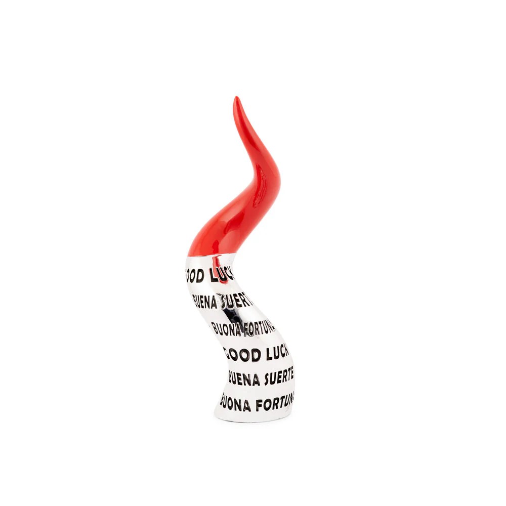 Un corno scaramantico che non si accontenta: un simbolo di fortuna e stile, reinterpretato con ironia e design contemporaneo.