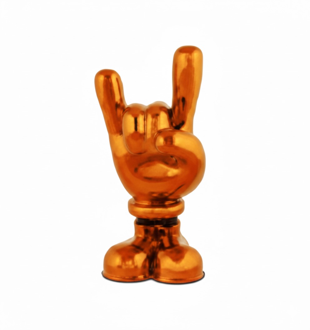 Realizzato in resina e polvere di marmo, rifinito a mano con smalto lucido e metallizzazione, è una scultura da appoggio perfetta per chi ama un design che non passa inosservato.