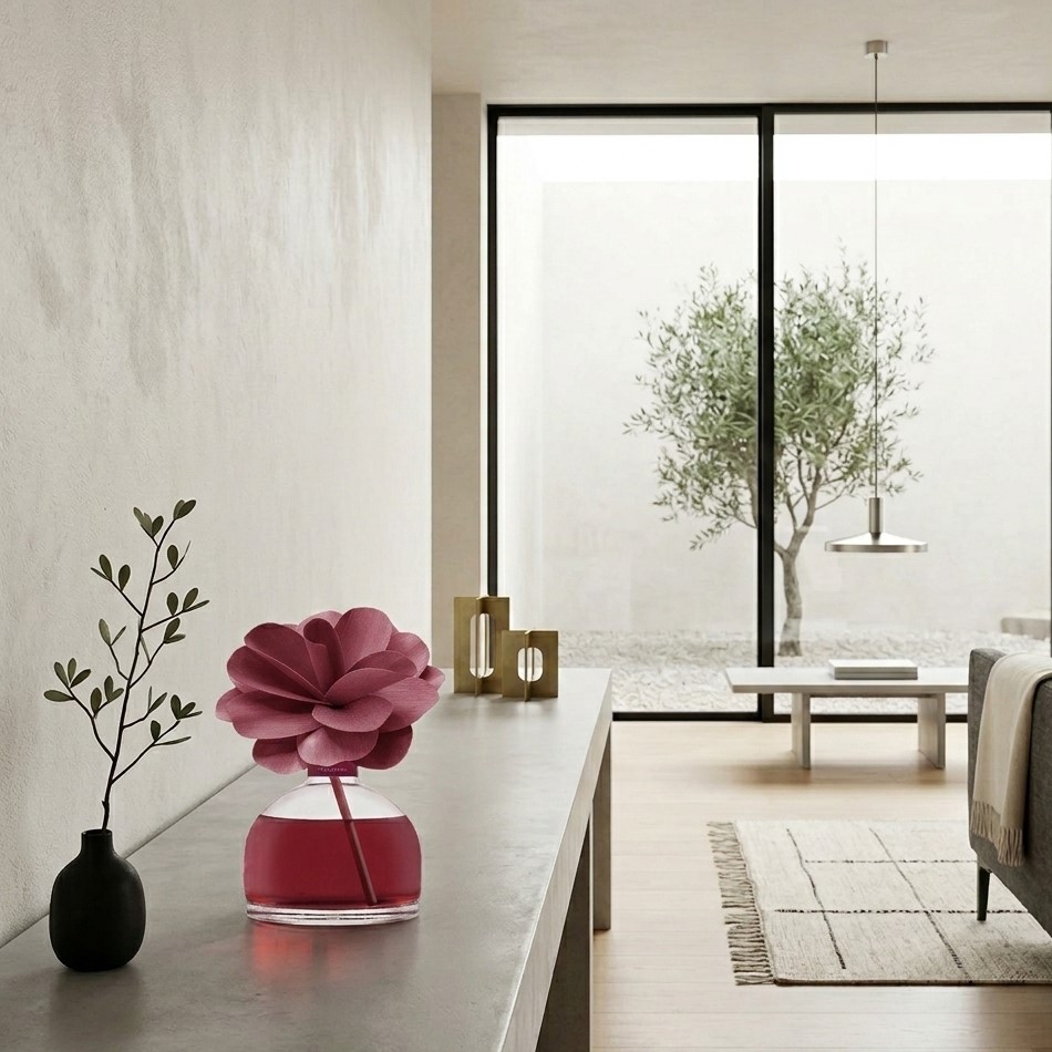 Profumatore d’ambiente in bottiglia di vetro con diffusore a forma