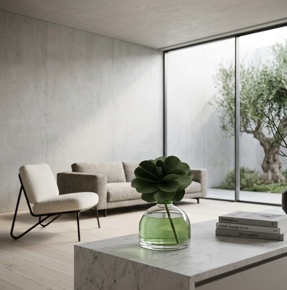 Profumatore d’ambiente in bottiglia di vetro con diffusore a forma