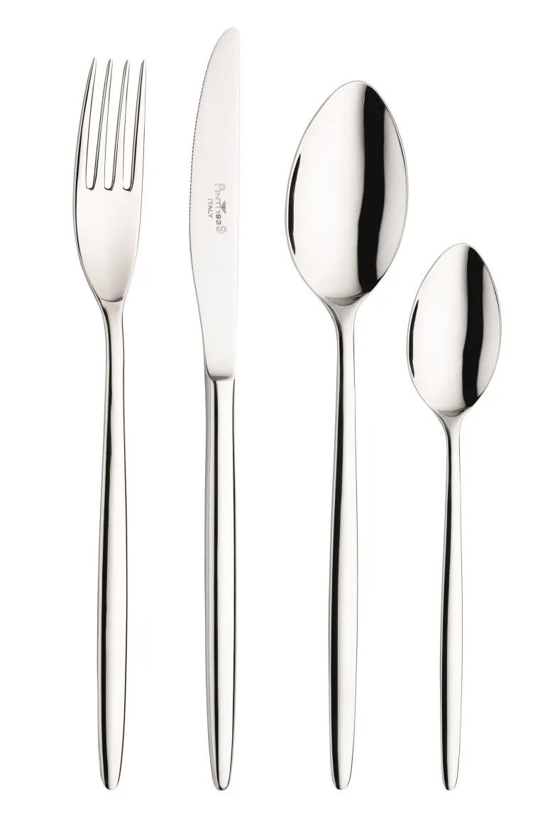 Grazie alla sua forma affusolata molto lunga ed elegante, Oliva si abbina perfettamente ai piatti grandi per creare una tavola di grande stile.Ha uno spessore di 3 mm e viene fornito in un set da 16 pezzi che comprende 4 forchette da 23 cm – 4 cucchiai da 23 cm – 4 coltelli da 24,5 cm – 4 cucchiai da tรจ/caffรจ da 16,5 cm.ร realizzato con acciaio inossidabile 18/10 di altissima qualitร . Il prodotto รจ lavabile in lavastoviglie