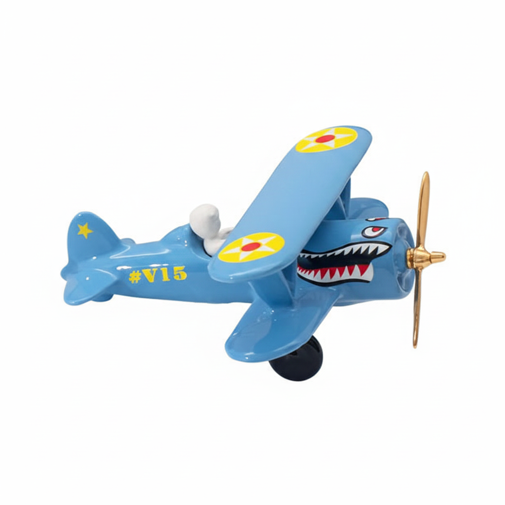 Design Iconico: Ispirato ai biplani classici e ai caccia vintage, presenta una vivace colorazione blu chiaro che evoca il cielo.