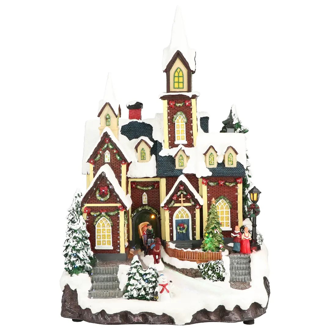 Suggestiva scena natalizia con una chiesa illuminata da luci LED multicolore, perfetta per donare un tocco festoso agli ambienti.